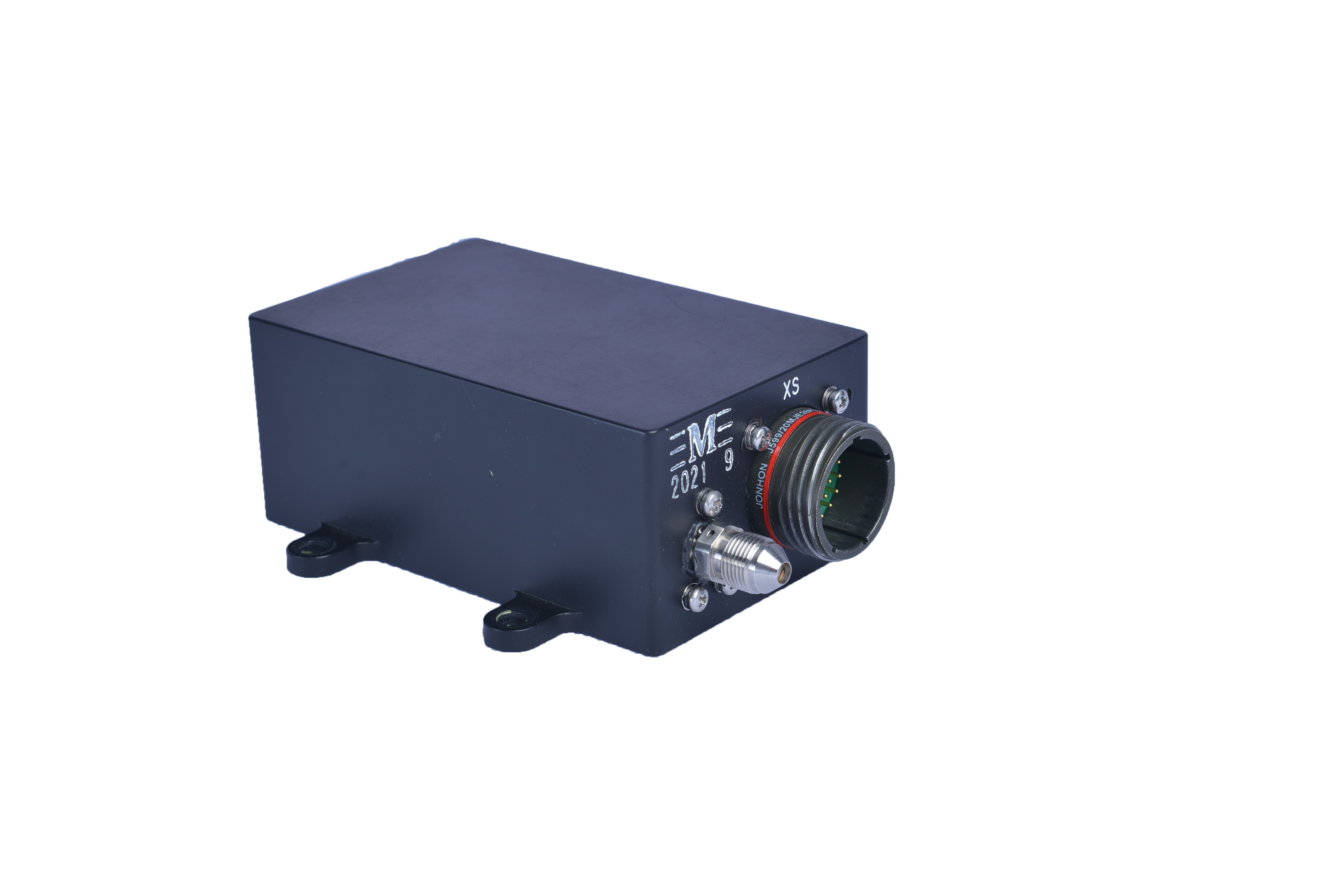 大气数据模块设计有1个对外电连接器,1个气路接口,可实时接收总压或静压受感器传递的压力信号,完成压力值解算后发送到上位机。