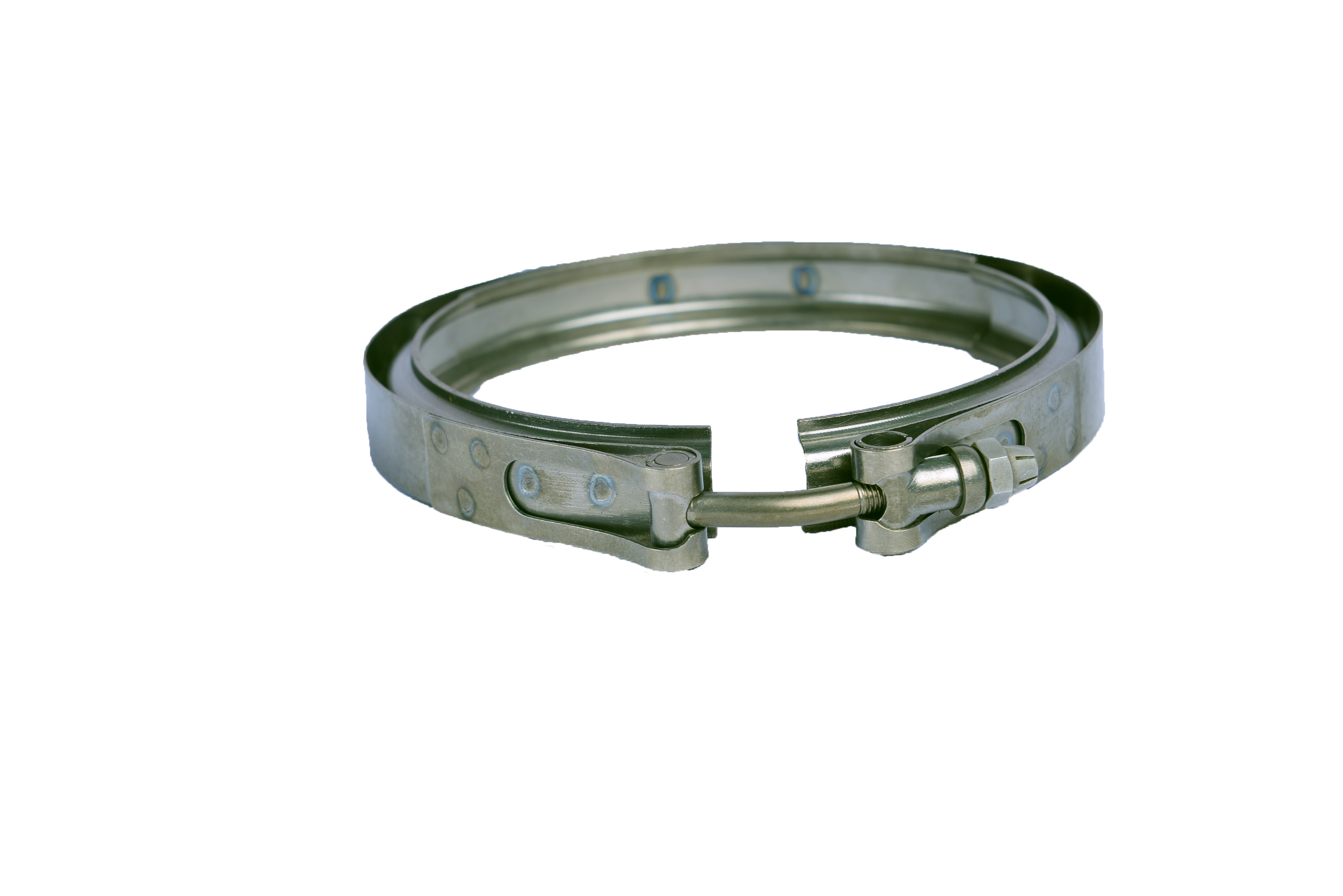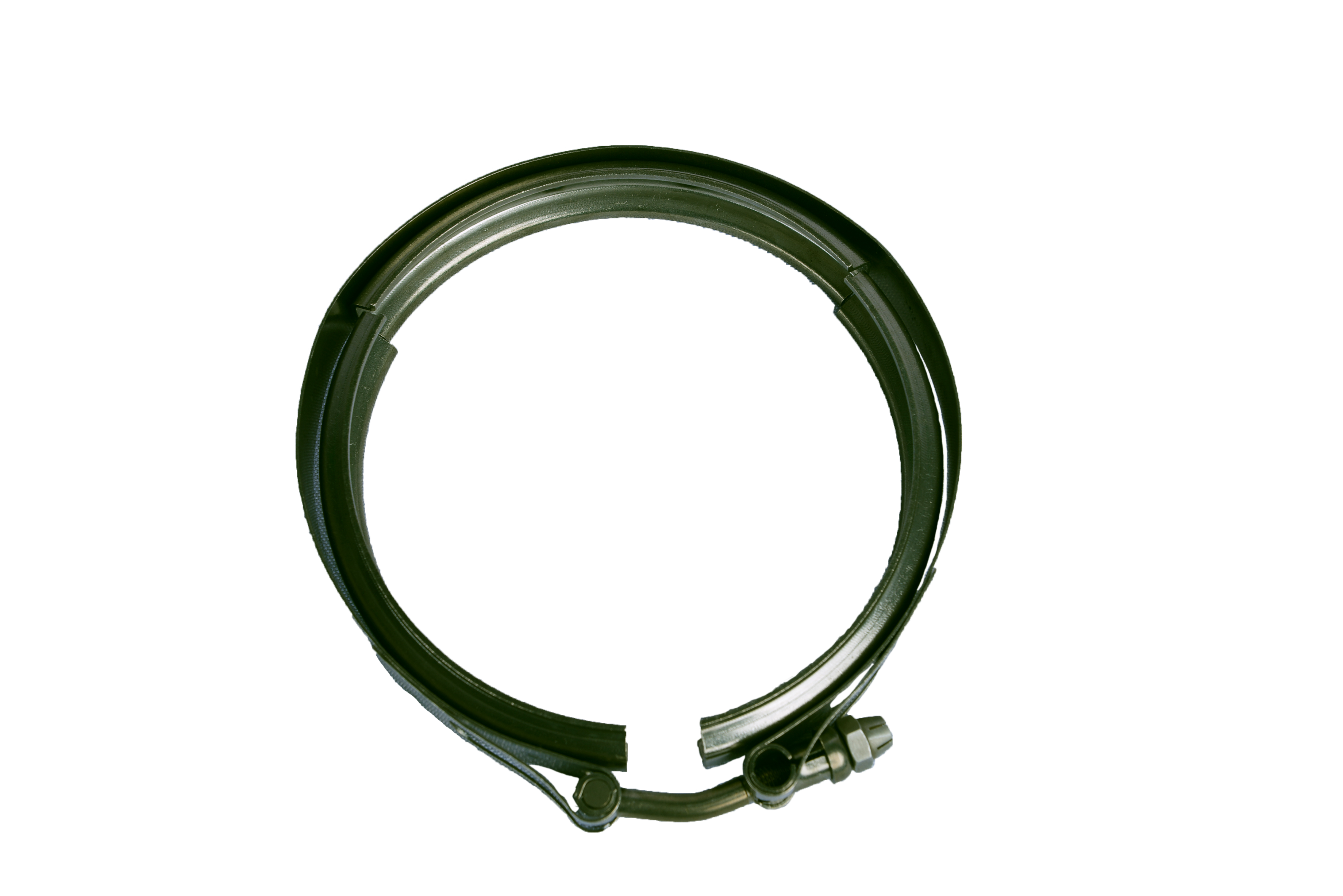 空气导管连接快卸组件是由2件凸缘法兰(或1件凸缘法兰和1件刚性法兰)和1件快卸卡箍组成的具有密封功能的组件,快卸卡箍通过螺栓对箍带产生径向压力,进而对凸缘法兰产生轴向压力,使导管连接具有密封功能。